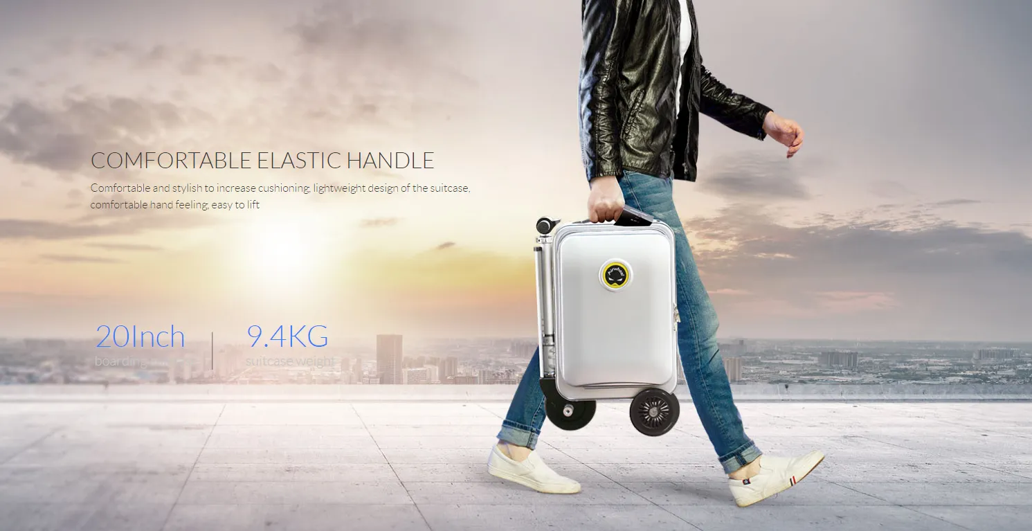 luggage is mainly made of high-quality aluminum alloy material, which allows the smart luggage to bear a maximum load of 110KG. Most of people can ride on it. In addition, due to the material of scooter luggage is thin, the capacity of the luggage is up to 20L. The capacity can meet your short-distance trip.
