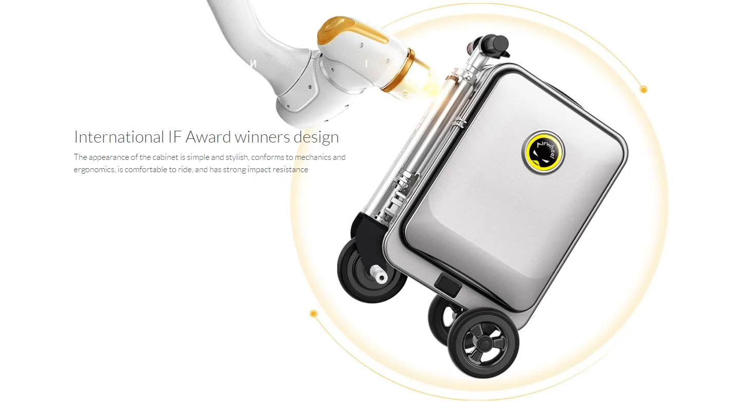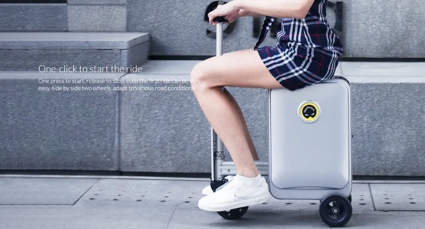luggage is a smart riding motorised suitcase. The 5.5-inch solid tires allow the Airwheel SE3S luggage to reach the speed of 13km/h. At the same time, luggage meets most airline baggage carry-on standards. No need to check it in, you can easily board the plane.